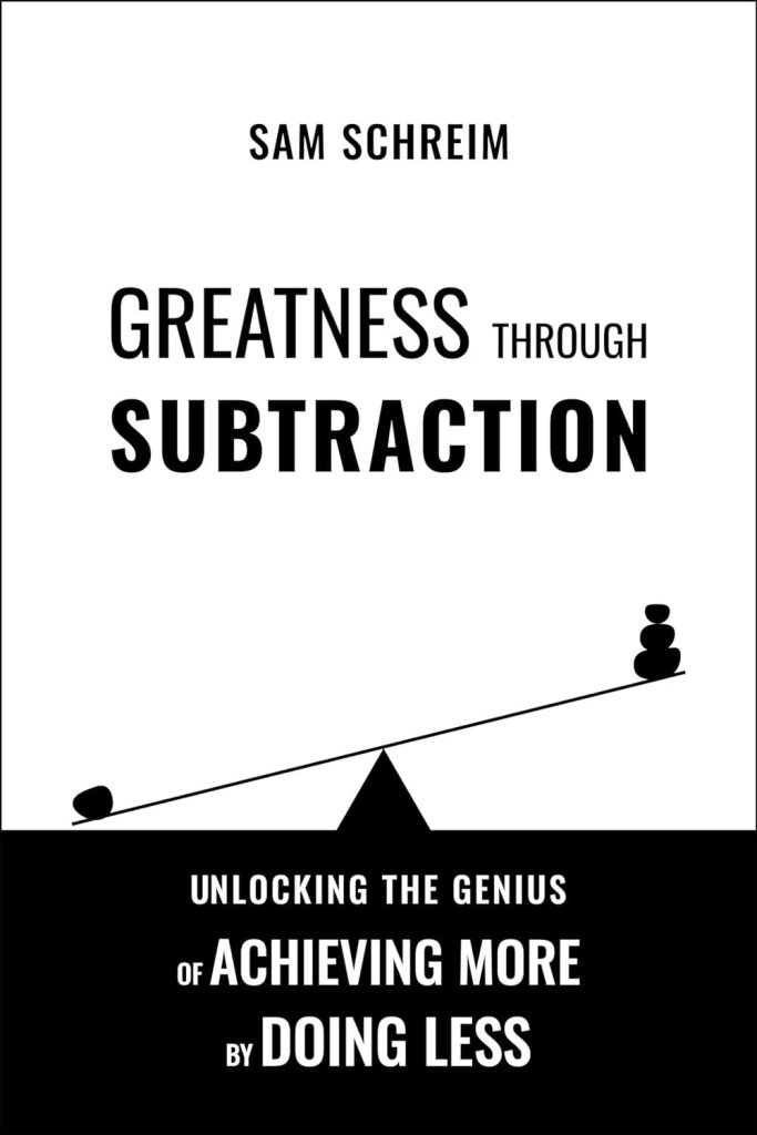 The author of this book emailed me and wanted me to share his book with my following. I am pleased to introduce Sam Schreim the author of “Greatness Through Subtraction: Unlocking the Genius of Achieving More by Doing Less (Cognitive Toolset).”